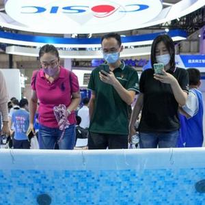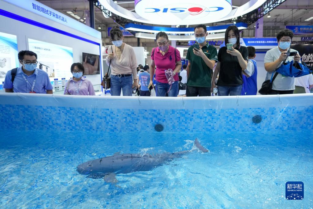8月18日,參觀者在2022世界機器人博覽會上拍攝一款水下仿生機器人。