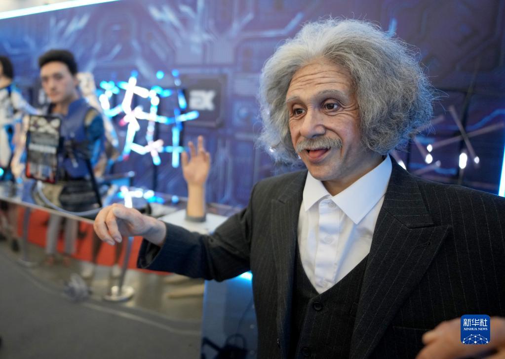 8月18日,愛因斯坦仿生人形機器人在進行表演。