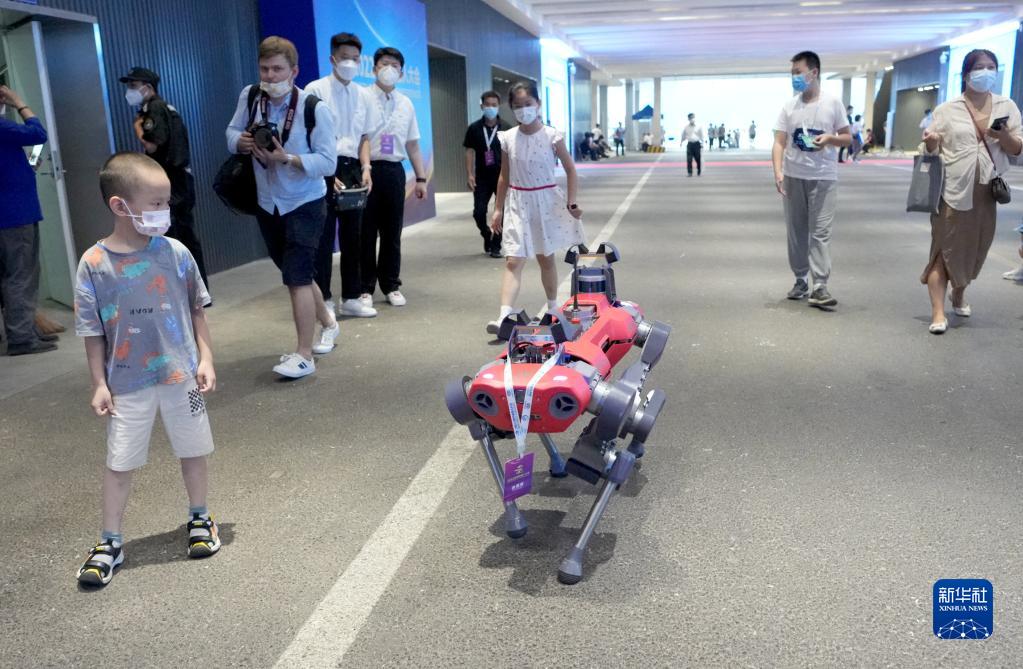 8月18日在2022世界機器人博覽會上拍攝的用于工業巡檢的“機器狗”。