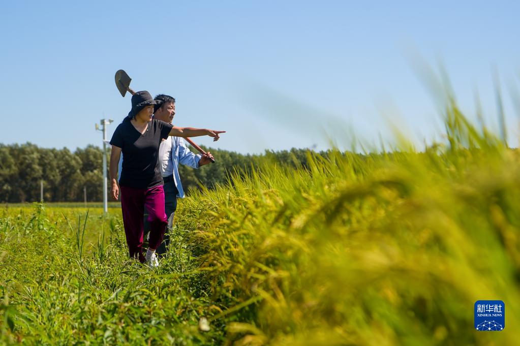 8月17日,在扎賚特旗好力保農業專業合作社的稻田,宋春平(前 )查看水稻長勢。