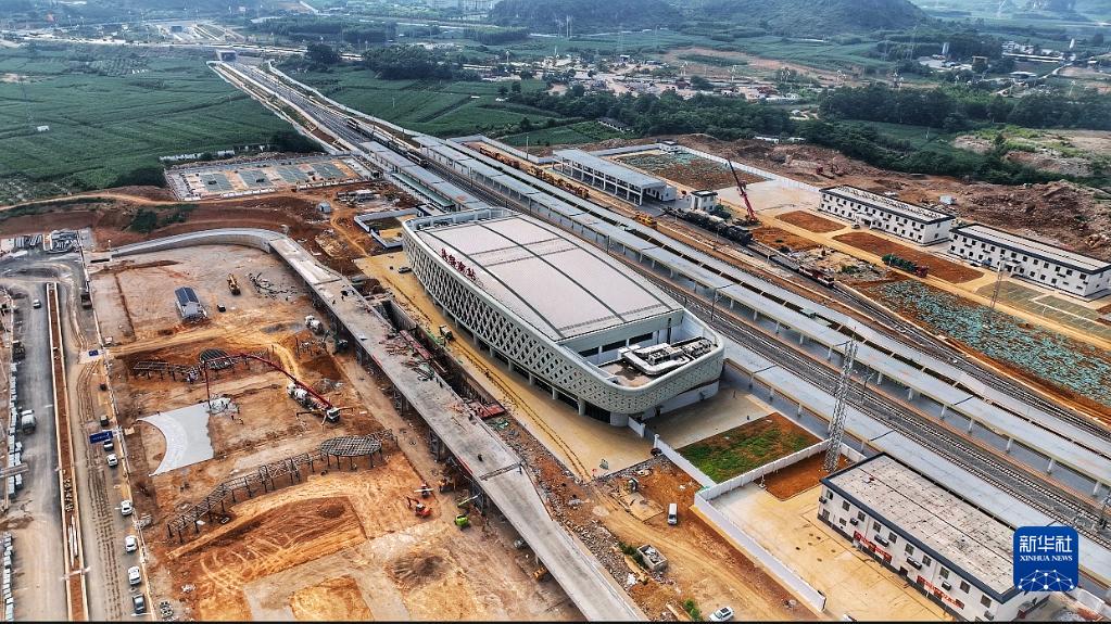 8月18日,南崇鐵路聯調聯試檢測車駛達扶綏南站(無人機照片)。