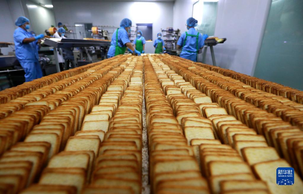 8月18日,在河北馬家麥坊食品有限公司饃片車間,工人在整理饃片。
