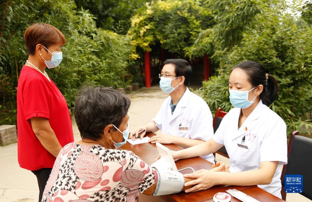 8月18日,在河北省邢臺市南和區和陽鎮鞏莊村,南和區人民醫院醫生為村民義診。