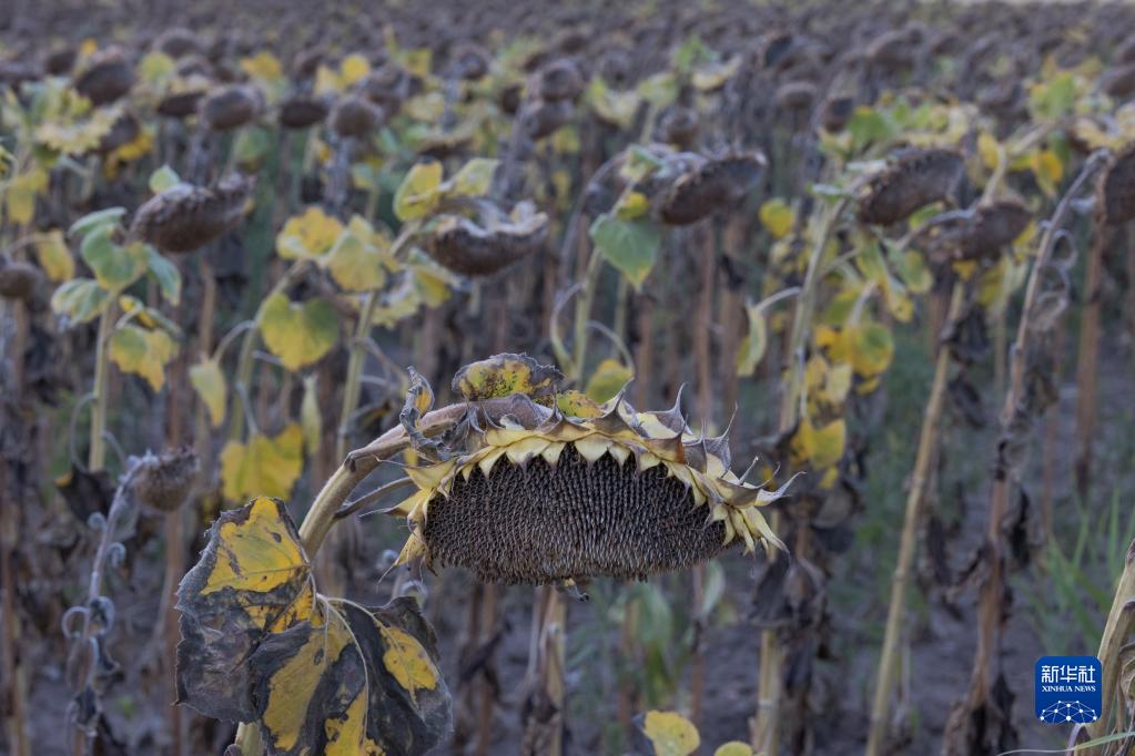 這是8月18日在匈牙利帕科茲德附近拍攝的枯萎的向日葵。