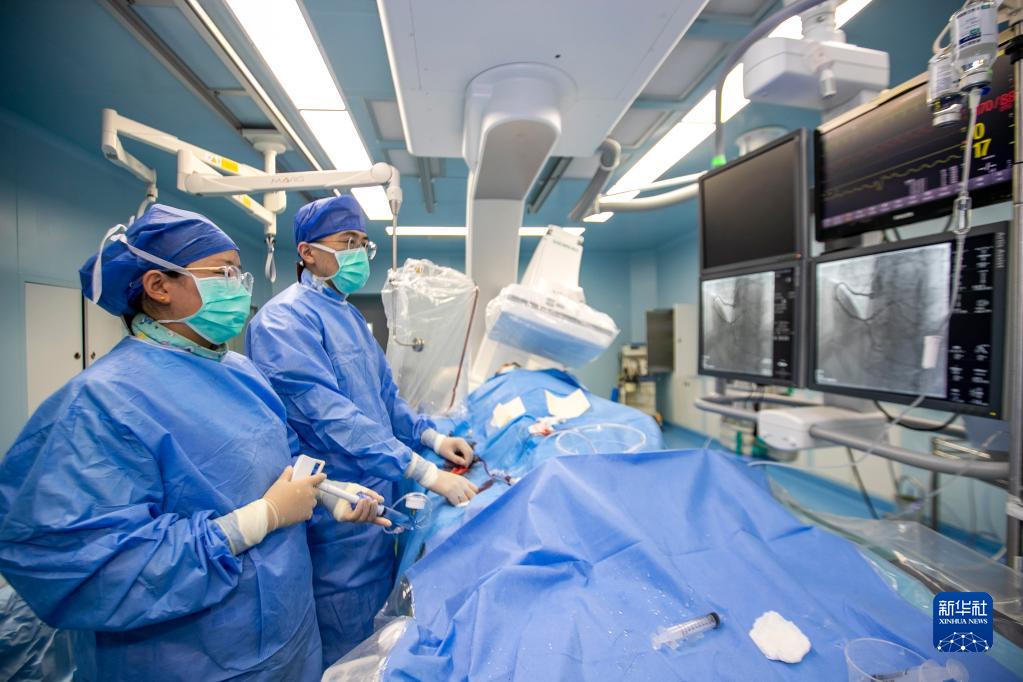 8月19日,在南京醫科大學附屬泰州人民醫院,心內科醫務人員為患者進行治療。