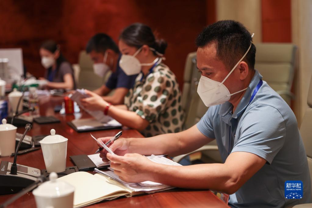8月18日,??诩t燕堂酒店健康管理驛站的服務專員整理滯留旅客的信息。