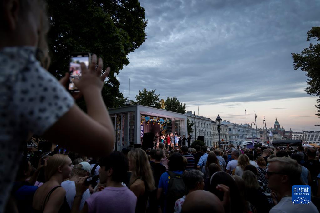 8月18日,在芬蘭赫爾辛基,人們在公園內觀看演出。