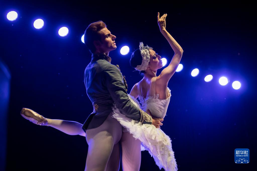8月18日,芬蘭國家芭蕾舞團在芬蘭赫爾辛基街頭為觀眾表演《天鵝湖》。