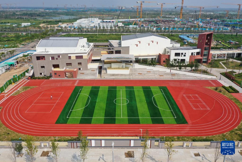 這是史家胡同小學雄安校區項目操場(8月17日攝,無人機照片)。