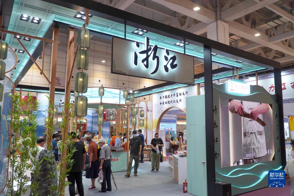 8月19日,在第六屆中華老字號(山東)博覽會,人們在浙江展區參觀。