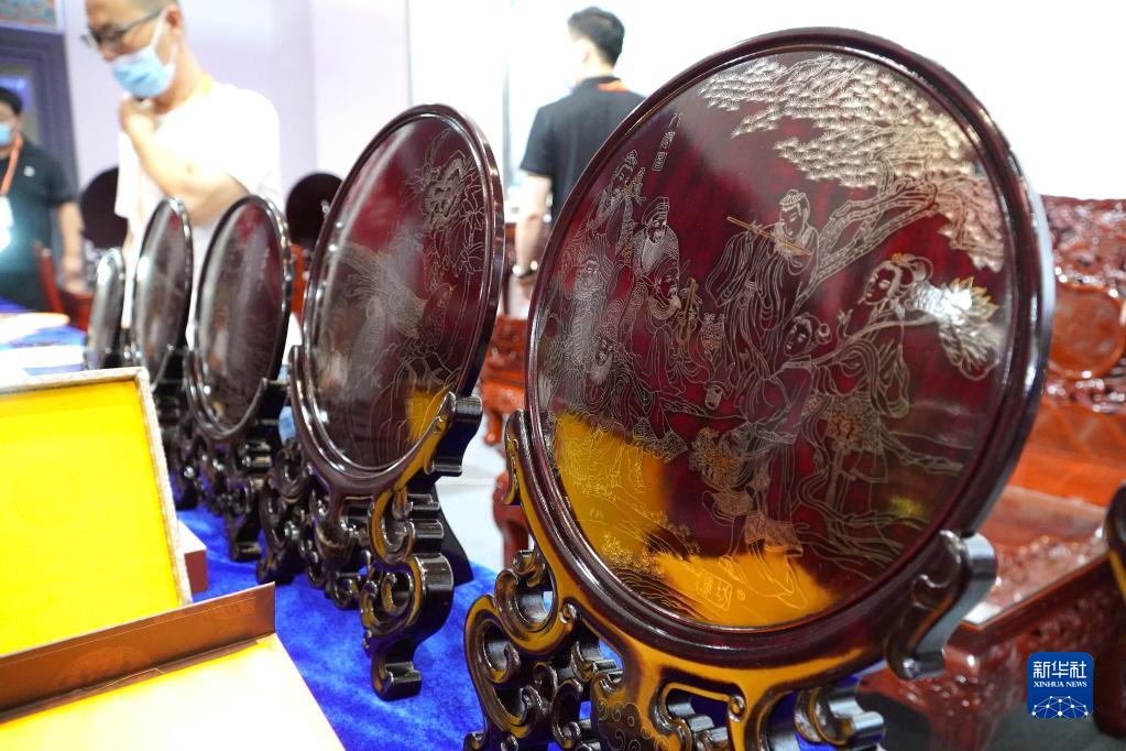 8月19日在第六屆中華老字號(山東)博覽會山東展區內拍攝的工藝品。
