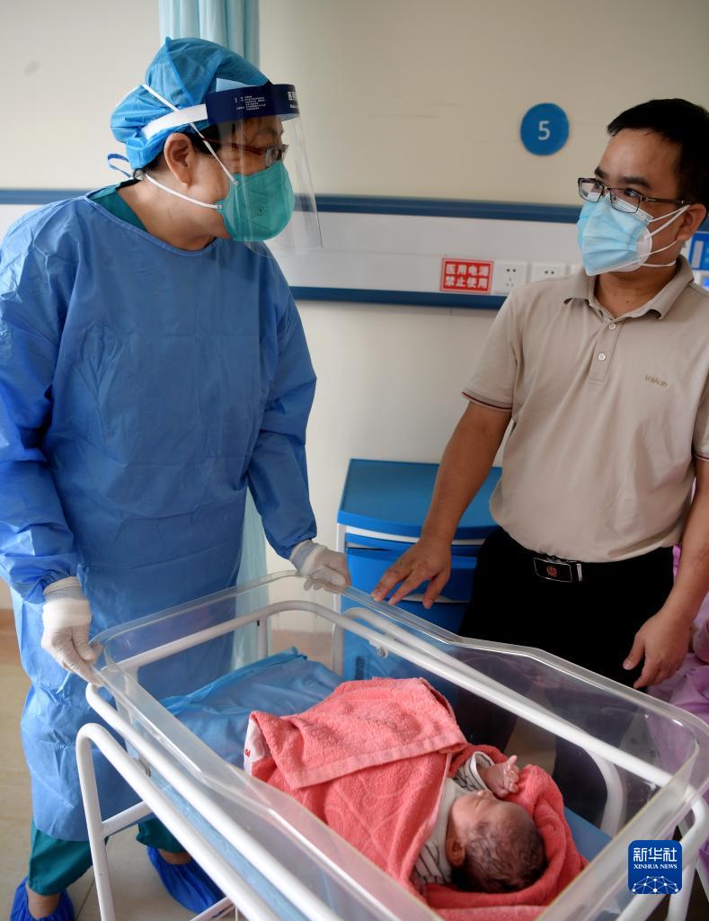 8月19日,海南三亞市婦女兒童醫院婦產科主任醫師田秀娟(左)在住院部了解新生兒健康狀況。