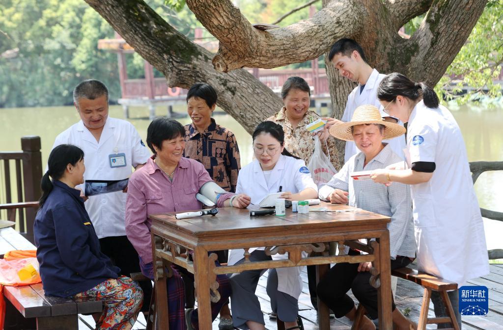 8月19日,在浙江省湖州市德清縣禹越鎮三林村,鎮衛生院醫師為村民義診。