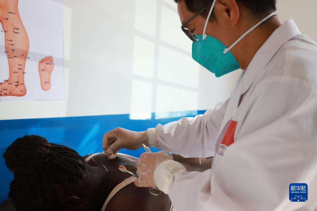 8月19日,在烏干達首都坎帕拉的中烏友好醫院,針灸師李曉斌為當地患者進行中醫針灸治療。