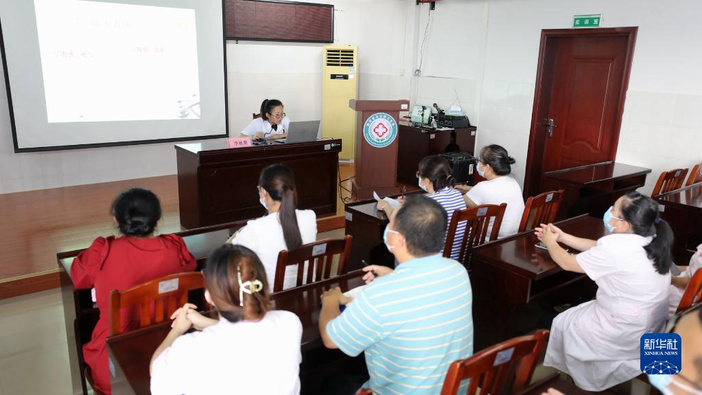 李秋菊在給當地醫務人員培訓(8月17日攝)。