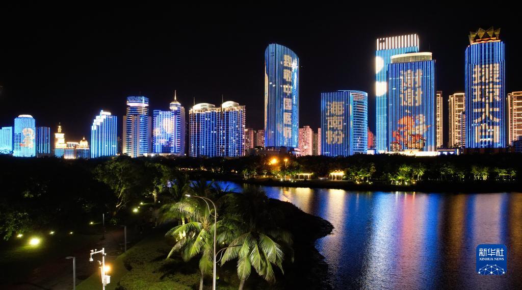 8月19日在??谑袨I海大道拍攝的中國醫師節主題燈光秀(無人機照片)。