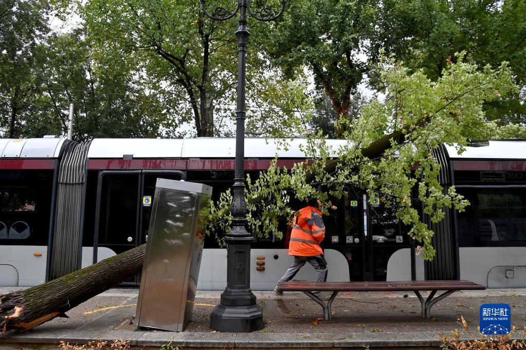 這是8月18日在意大利托斯卡納大區首府佛羅倫薩拍攝的被刮倒的樹木。