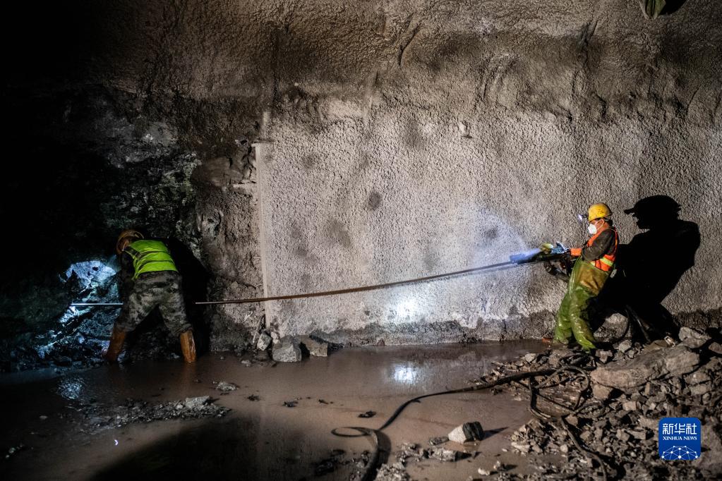 8月19日,工人在華麗高速營盤山隧道內作業。