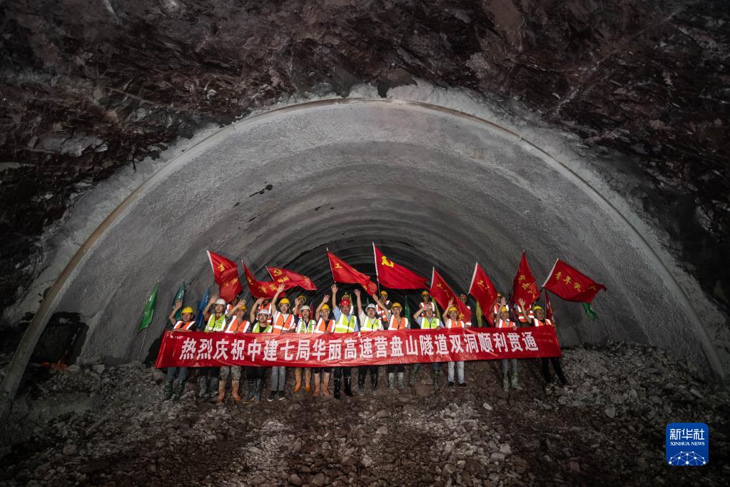 8月19日,建設者在華麗高速營盤山隧道內慶祝貫通。