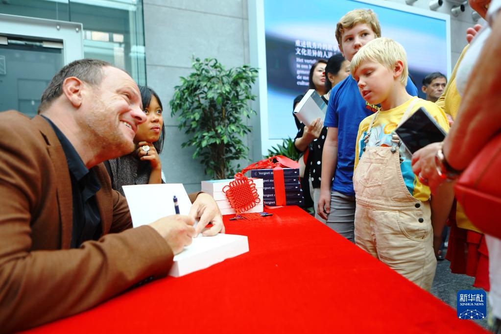 8月17日,在比利時布魯塞爾中國文化中心,出版社代表以及譯者在《忘記我》荷蘭語版新書發布儀式上簽名贈書。