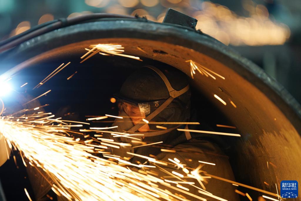 8月19日,在哈電集團哈爾濱電機廠有限責任公司的車間,工人在生產作業。