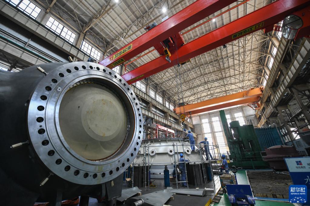 8月20日,在哈電集團哈爾濱電機廠有限責任公司的車間,工人在生產作業。新華社記者 王松 攝