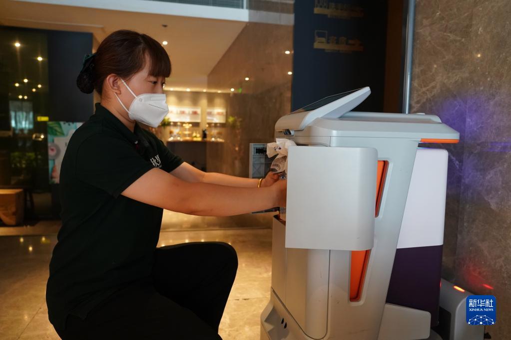 該酒店的服務機器人為入住客人提供外賣、客耗品的無接觸配送服務。不僅節省人力,也提升了酒店的服務品質。
