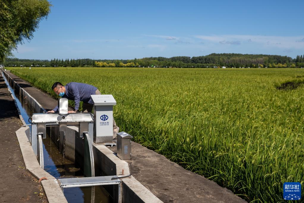 8月20日,工作人員在北大荒集團閆家崗農場有限公司農業現代化示范區內檢查自動排水灌溉設備。