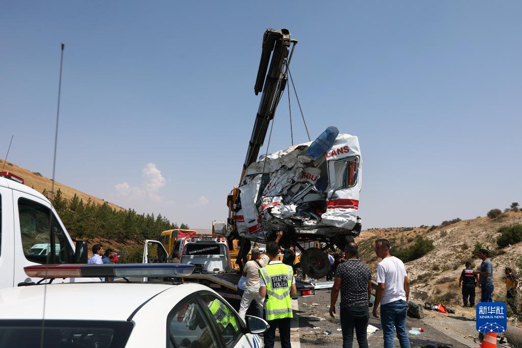 這是8月20日在土耳其加濟安泰普省拍攝的交通事故現場。