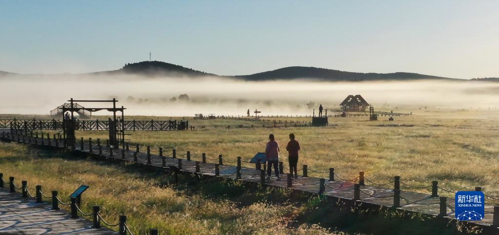 8月20日,游客在塞罕壩國家森林公園游玩(無人機照片)。