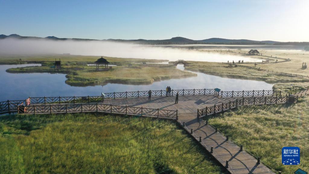 8月20日,游客在塞罕壩國家森林公園游玩(無人機照片)。
