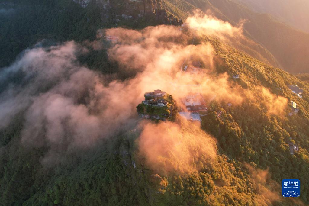 當日,位于貴州省銅仁市的世界自然遺產地梵凈山晨景迷人。