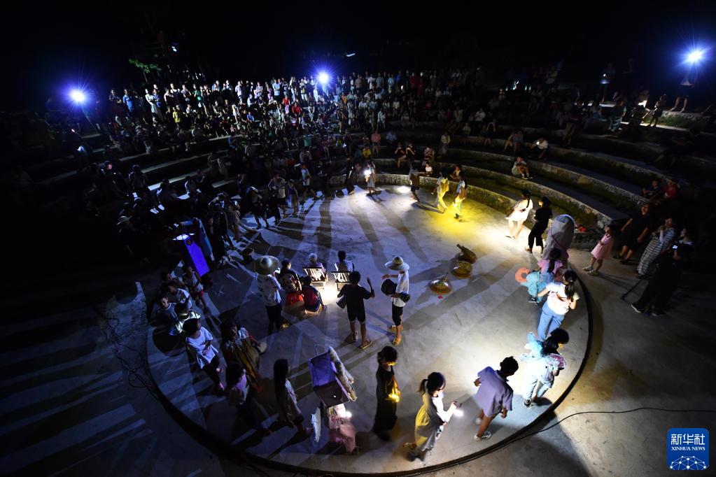 8月20日,孩子們在大元社露天劇場演出戲劇。