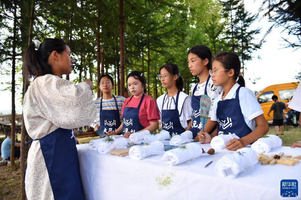 今年7月,附近村莊和鄰近縣市的70多個孩子參加了大元社的暑期活動,在完成基本學業之余,學習手工、繪畫、音樂等藝術相關課程。8月20日傍晚,孩子和村民們一起舉辦的藝術節便是“結業典禮”。為了準備藝術節的重頭戲——沉浸式戲劇,孩子們自己打磨劇本、設計服裝、調試燈光,40多個孩子穿著自己設計的服裝,期待著屬于他們的鄉村藝術節。