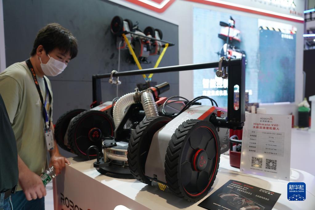 這是在2022世界機器人博覽會現場拍攝的水射流清理機器人(8月18日攝)。