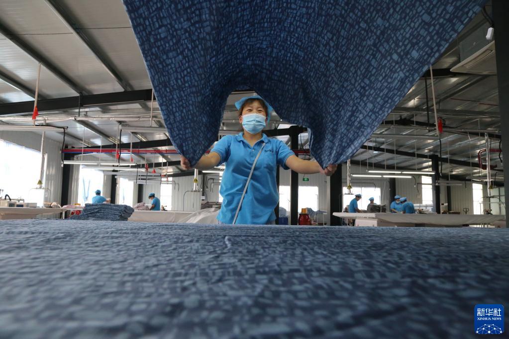 8月21日,濱州市惠民縣一家紡公司工人在整理出廠的床上用品。
