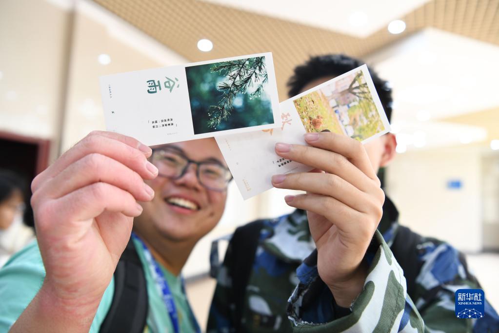 8月21日,中國科學技術大學2022級本科新生領取寫有學長學姐祝福的明信片。