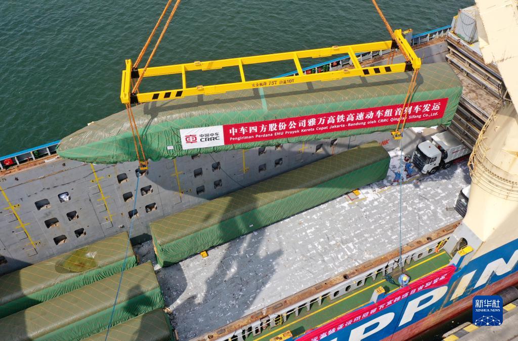 8月21日,我國出口印尼用于雅萬高鐵的1組高速動車組和1組綜合檢測列車在山東港口青島港完成裝船,通過海運發往印尼。