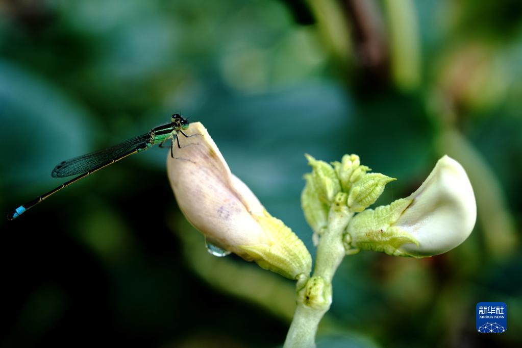 8月21日在上海松江區洞涇鎮一個家庭農場菜地里拍攝的豆娘。