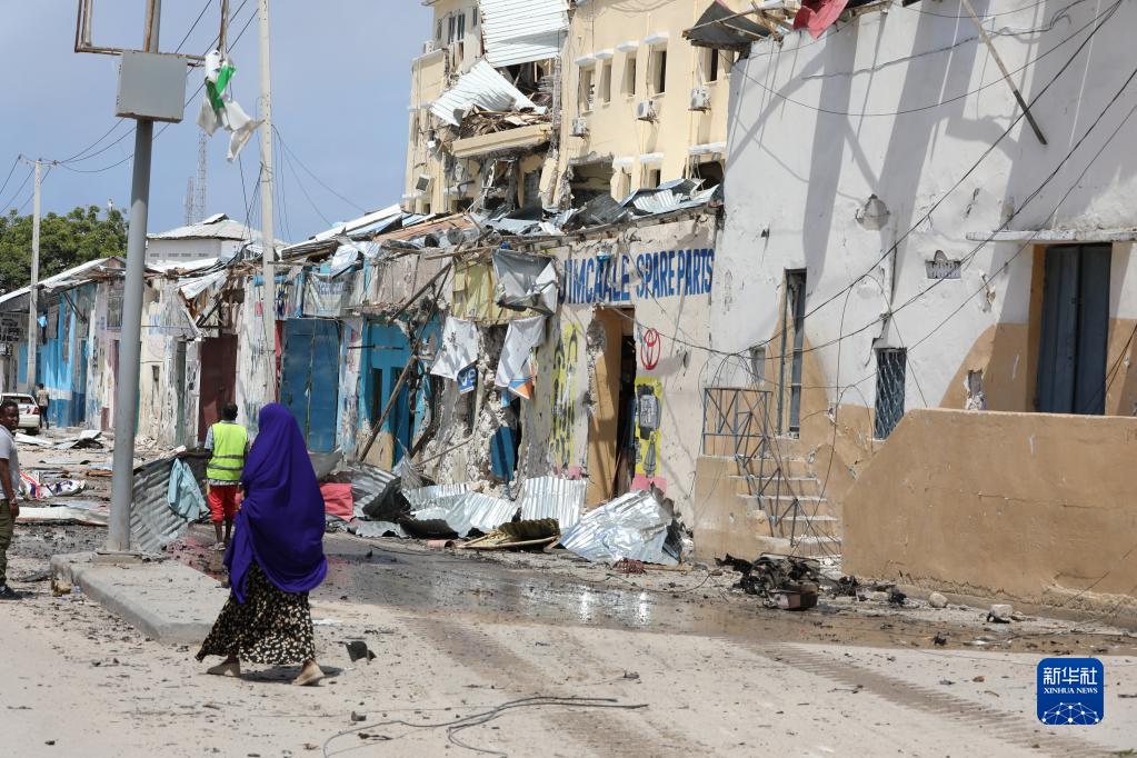 這是8月21日在索馬里摩加迪沙遇襲酒店附近拍攝的建筑殘骸。