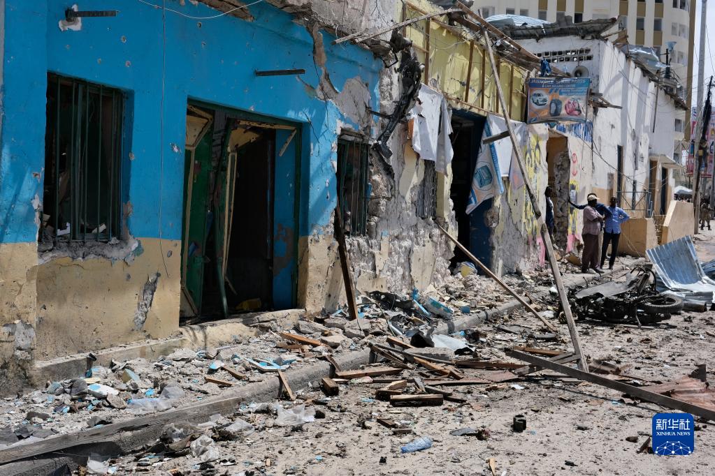 這是8月21日在索馬里摩加迪沙遇襲酒店附近拍攝的建筑殘骸。