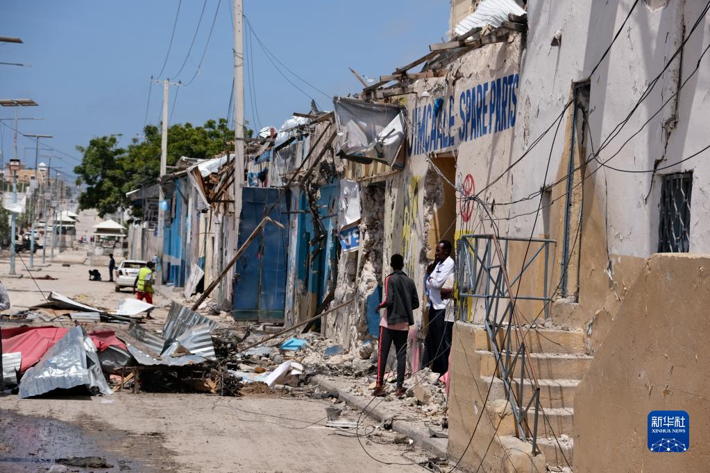 這是8月21日在索馬里摩加迪沙遇襲酒店附近拍攝的建筑殘骸。