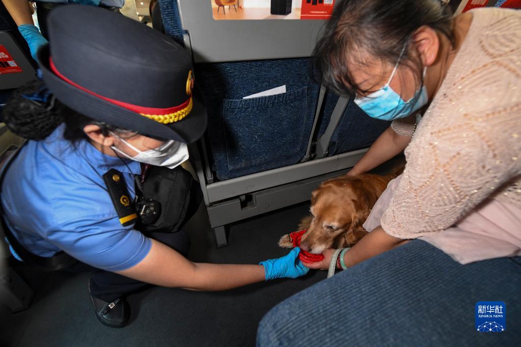 8月19日,在河源東到深圳北的G2267次車上,列車長李雙(左)幫助張莉給滿悅喂水。