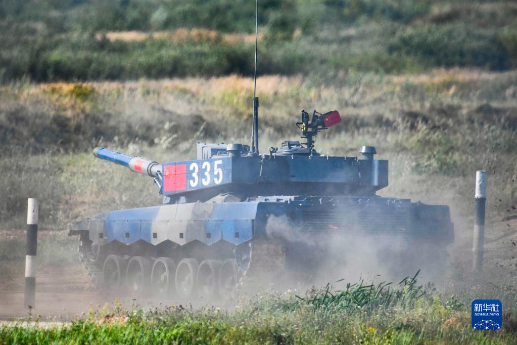 8月21日,在俄羅斯莫斯科州阿拉比諾靶場,中國參賽隊96B坦克在比賽中。