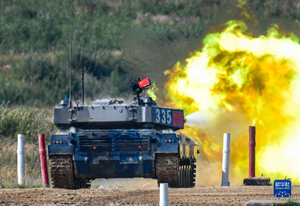 8月21日,在俄羅斯莫斯科州阿拉比諾靶場,中國參賽隊96B坦克在比賽中。