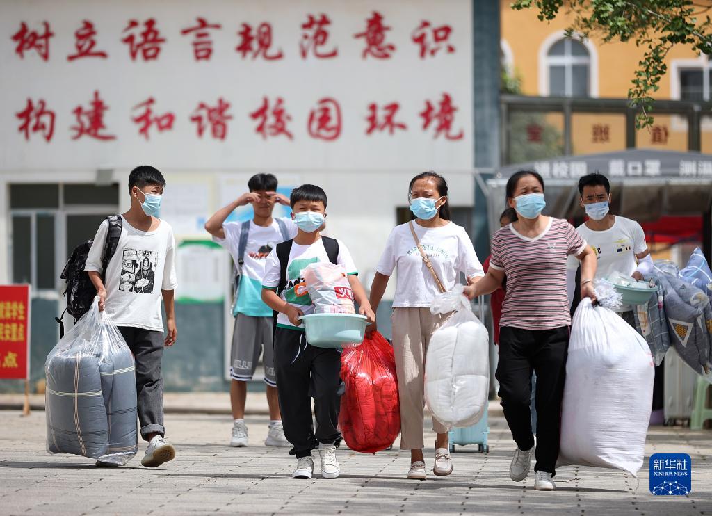8月22日,在貴州省黔東南苗族侗族自治州丹寨縣第二中學,家長陪伴初一年級新生前往報到處報名。