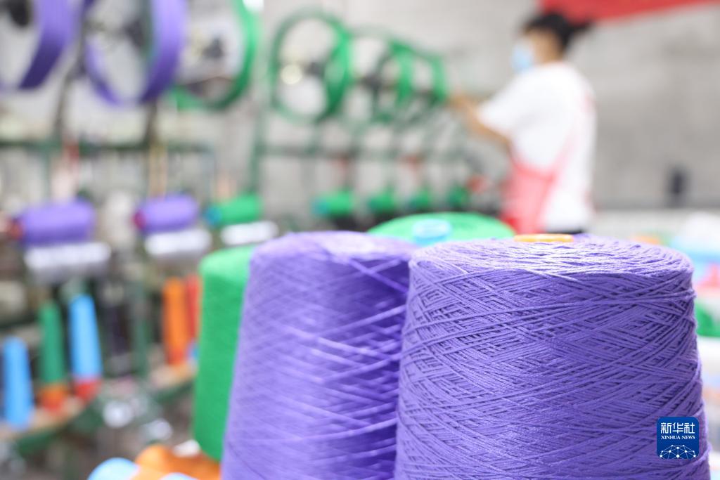 8月22日,在南和區西三召村一家十字繡廠,女工在生產繡線。
