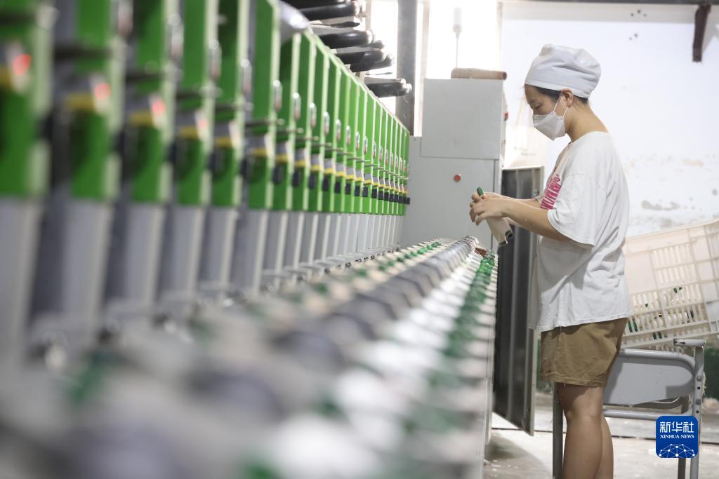 8月22日,在南和區東善友橋村一家紡織廠,女工在生產線上忙碌。