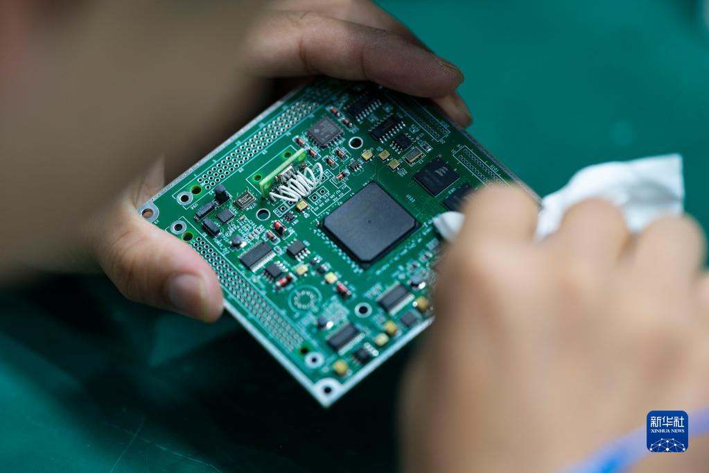 2022年8月3日,在長光衛星技術股份有限公司電裝車間,陳茂勝團隊的電裝操作員在進行電路板清洗。