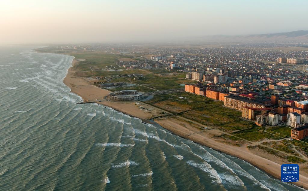 這是8月21日在俄羅斯達吉斯坦共和國馬哈奇卡拉市航拍的海濱風光。新華社/塔斯社